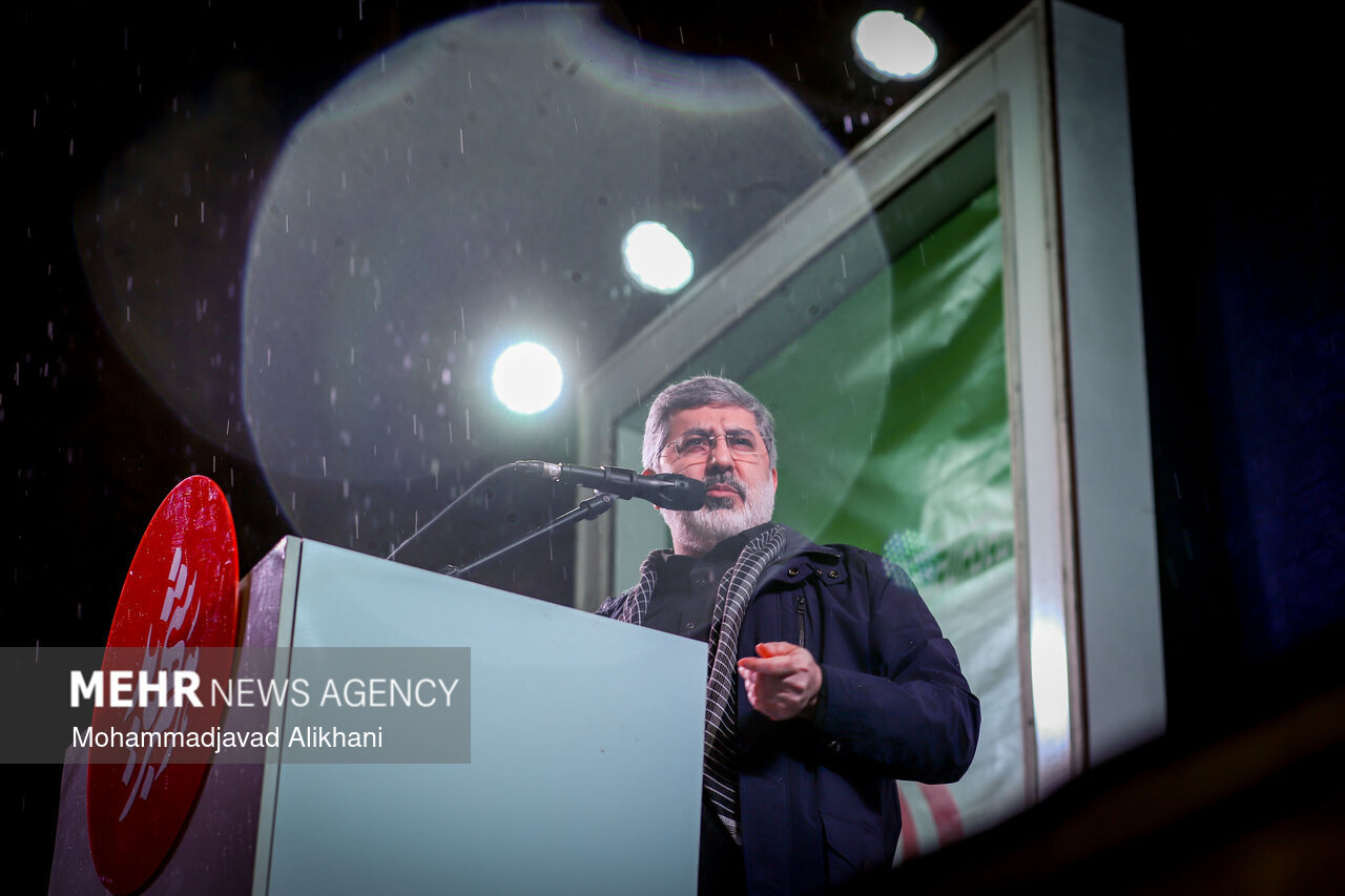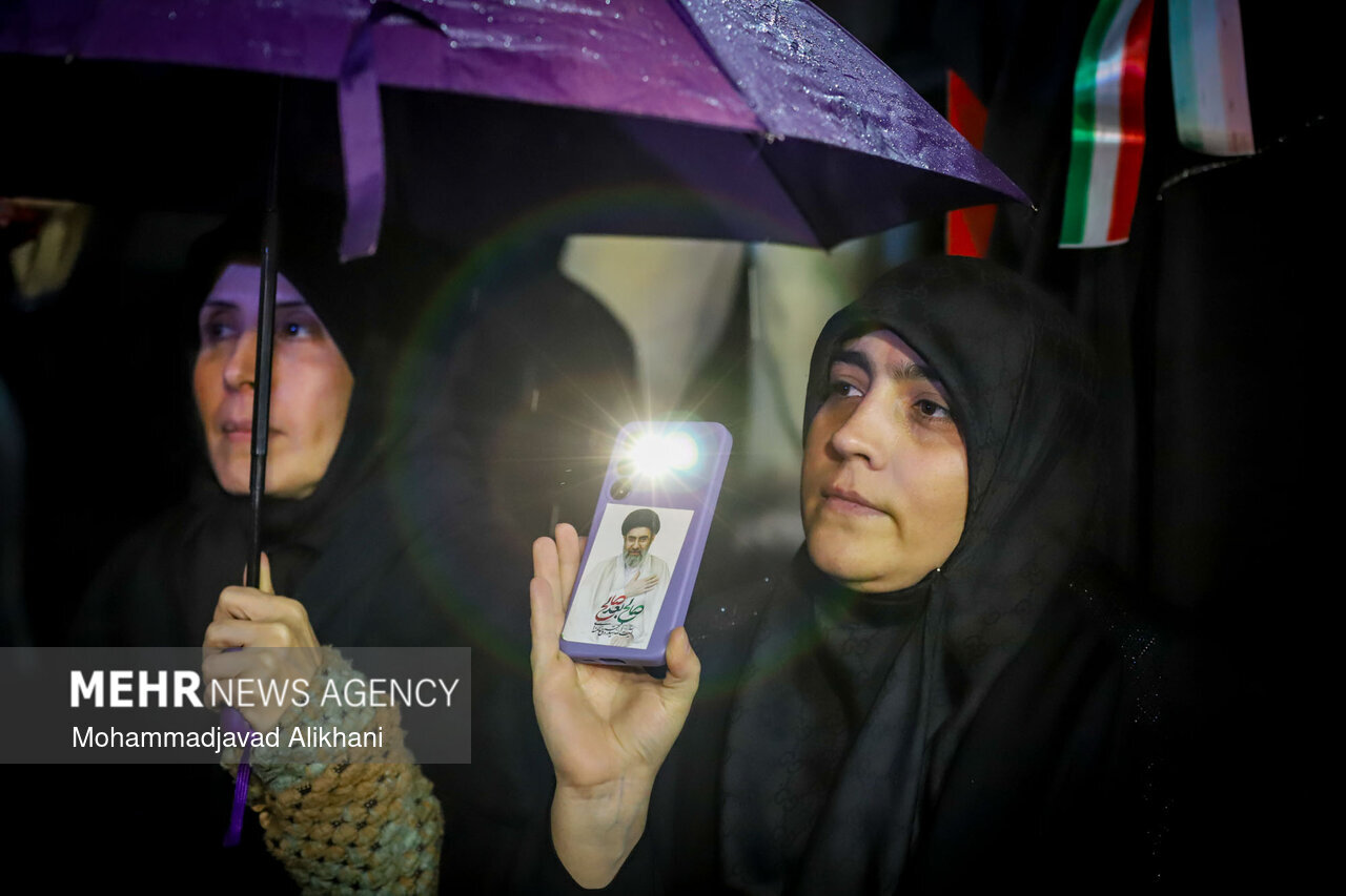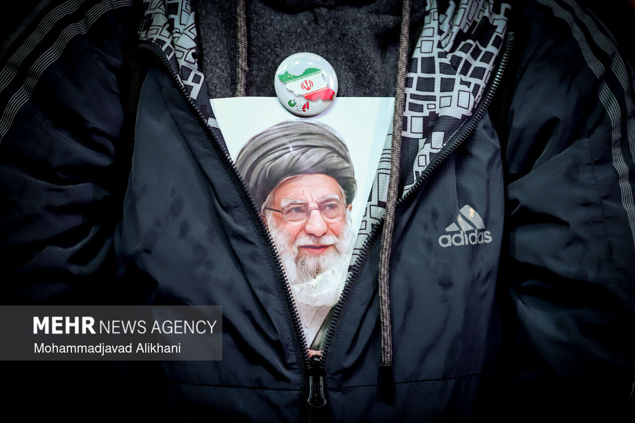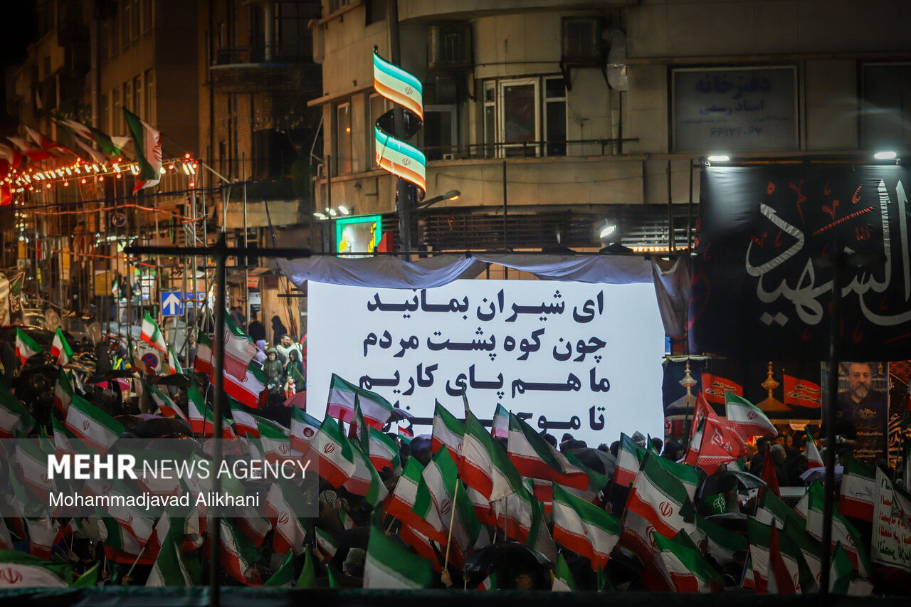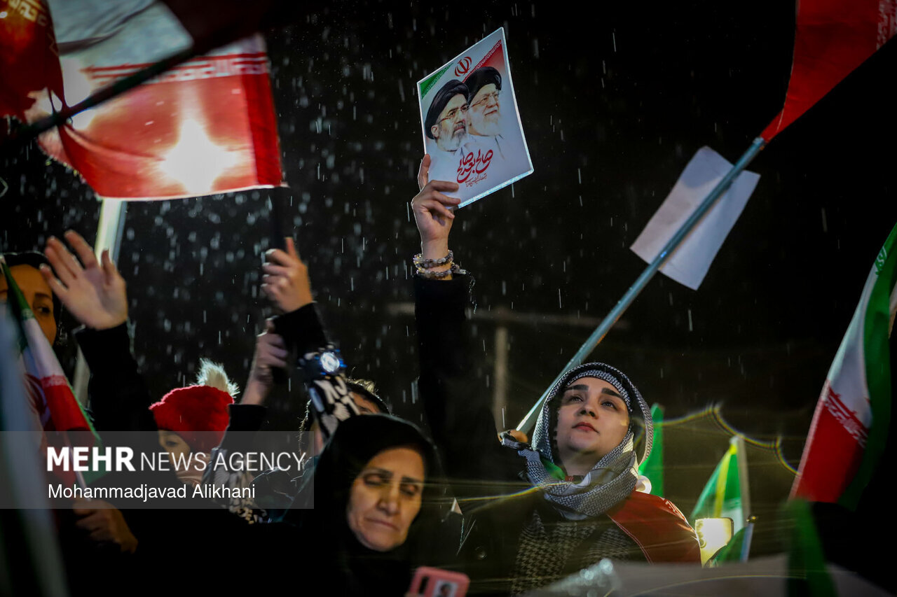 خلال حرب رمضان، ولإحباط مؤامرةٍ محتملةٍ من العدو الصهيوني، تتجمع مئات الآلاف من الشعب الايراني في ساحة الثورة الإسلامية بطهران تضامناً ودعما للقوات المسلحة امام العدو الصهيوالامريكي المجرم.