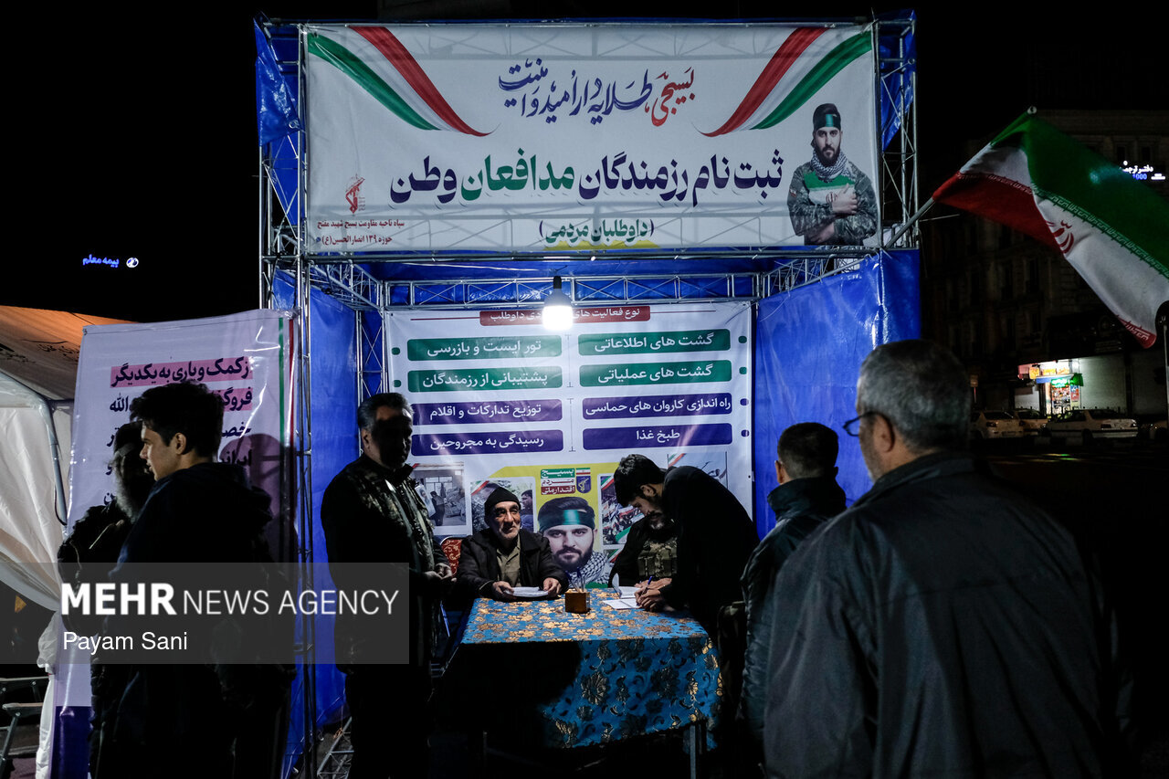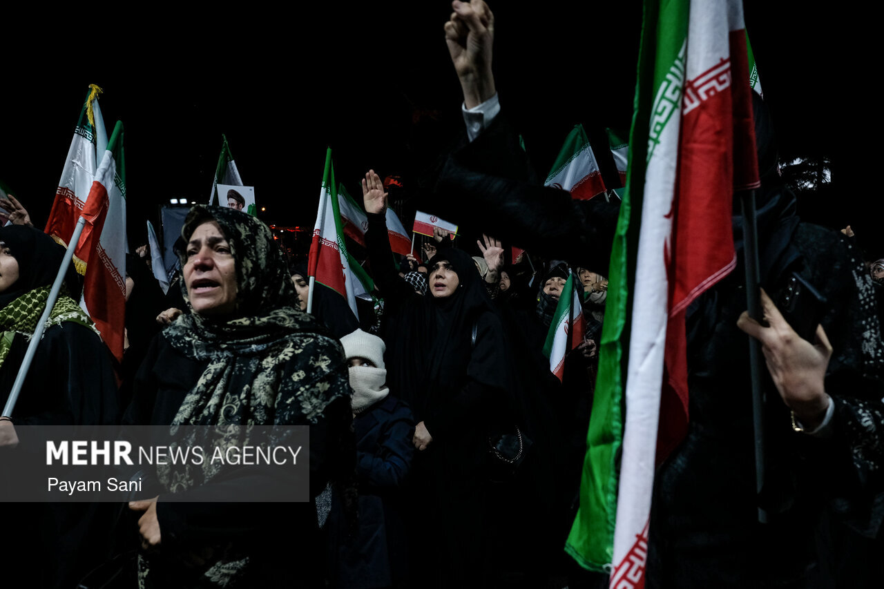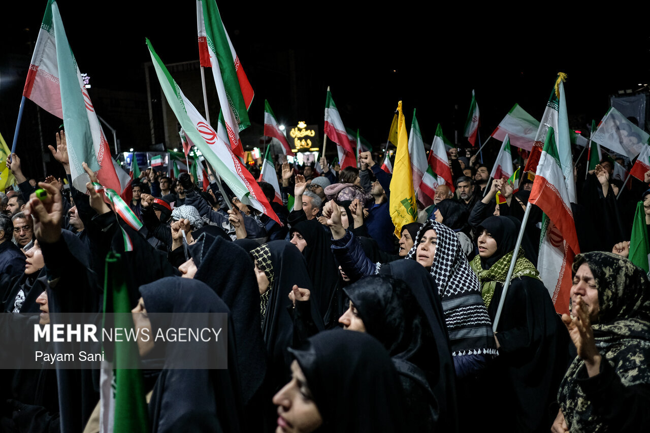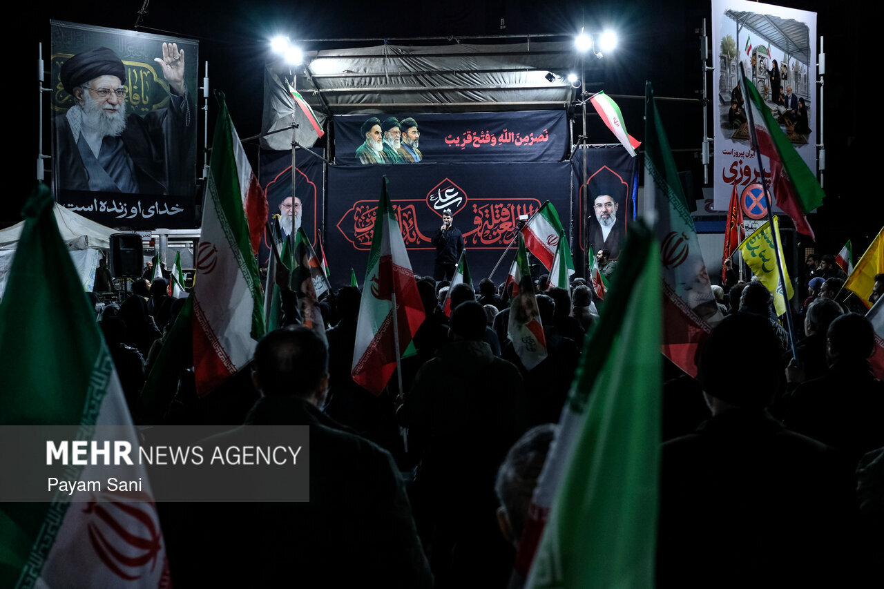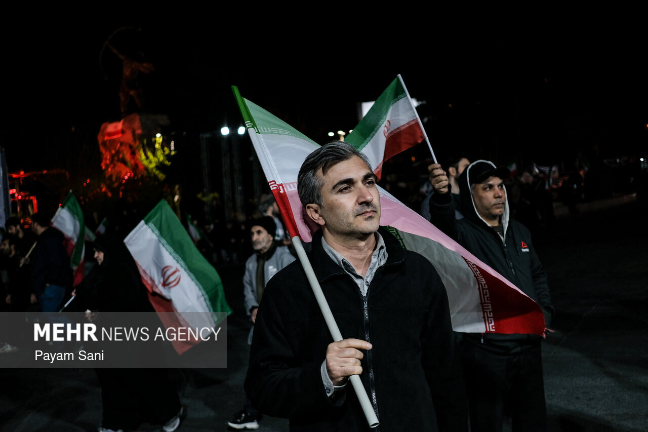حضر اهالي العاصمة طهران الليلة البارحة الشوارع كما الليالي ٣٦ الماضية منذ الحرب العدوانية الصهيوالامريكية، دعما للقوات المسلحة في مواجهة الأعداء.