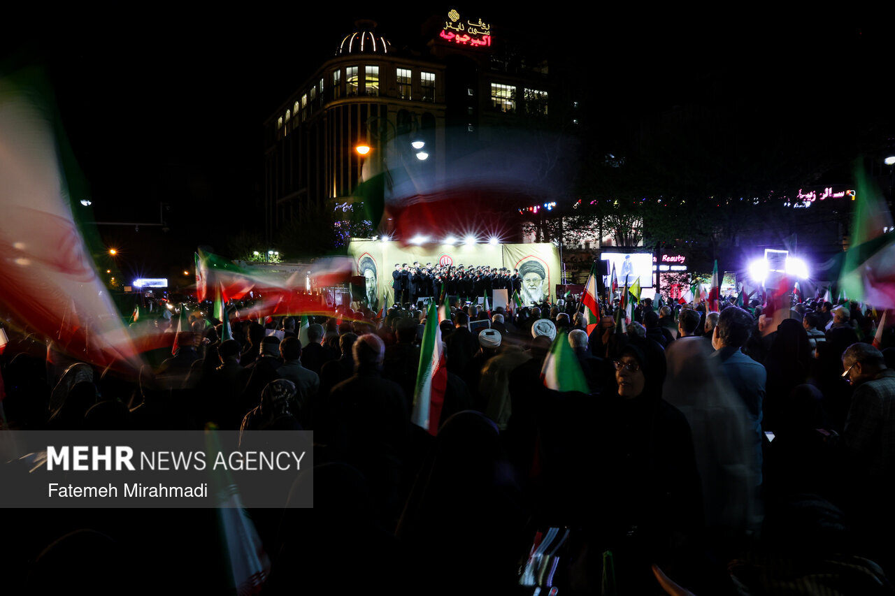حضر اهالي العاصمة طهران البارحة الشوارع، كما كان الحال جميع الليالي منذ بداية الحرب الصهيوالامريكية، دعما للقوات المسلحة في الميدان وتحييدا لاى مؤامرة من العدو.